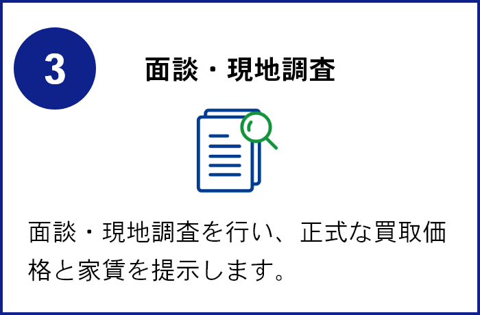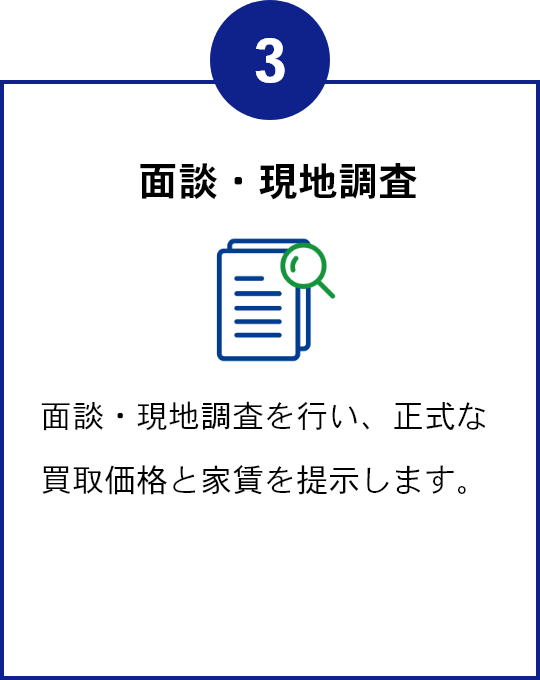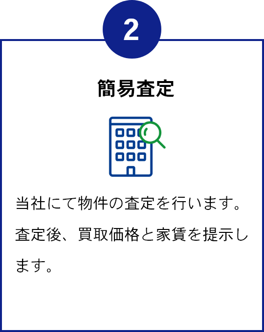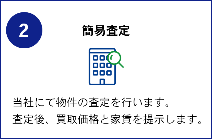 簡易査定は最短即日で実施いたします。買取額・家賃・初期費用などをお見積もりいたします。