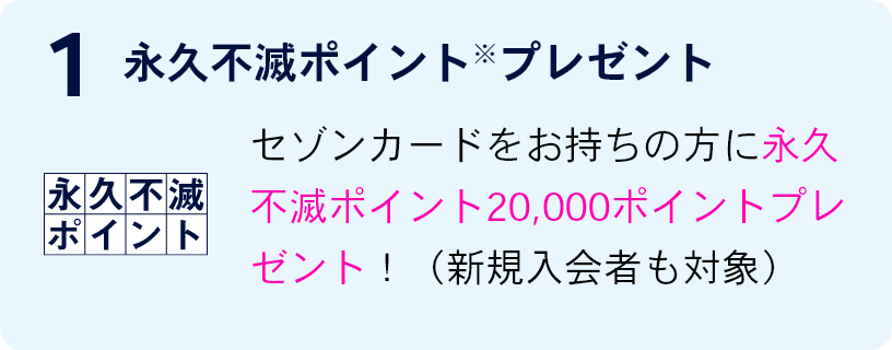 ・本特典は「リースバック契約が成立し、契約成立時に(株)クレディセゾン発行の永久不滅ポイントが貯まるカードをお持ちの方 」が対象となります。
